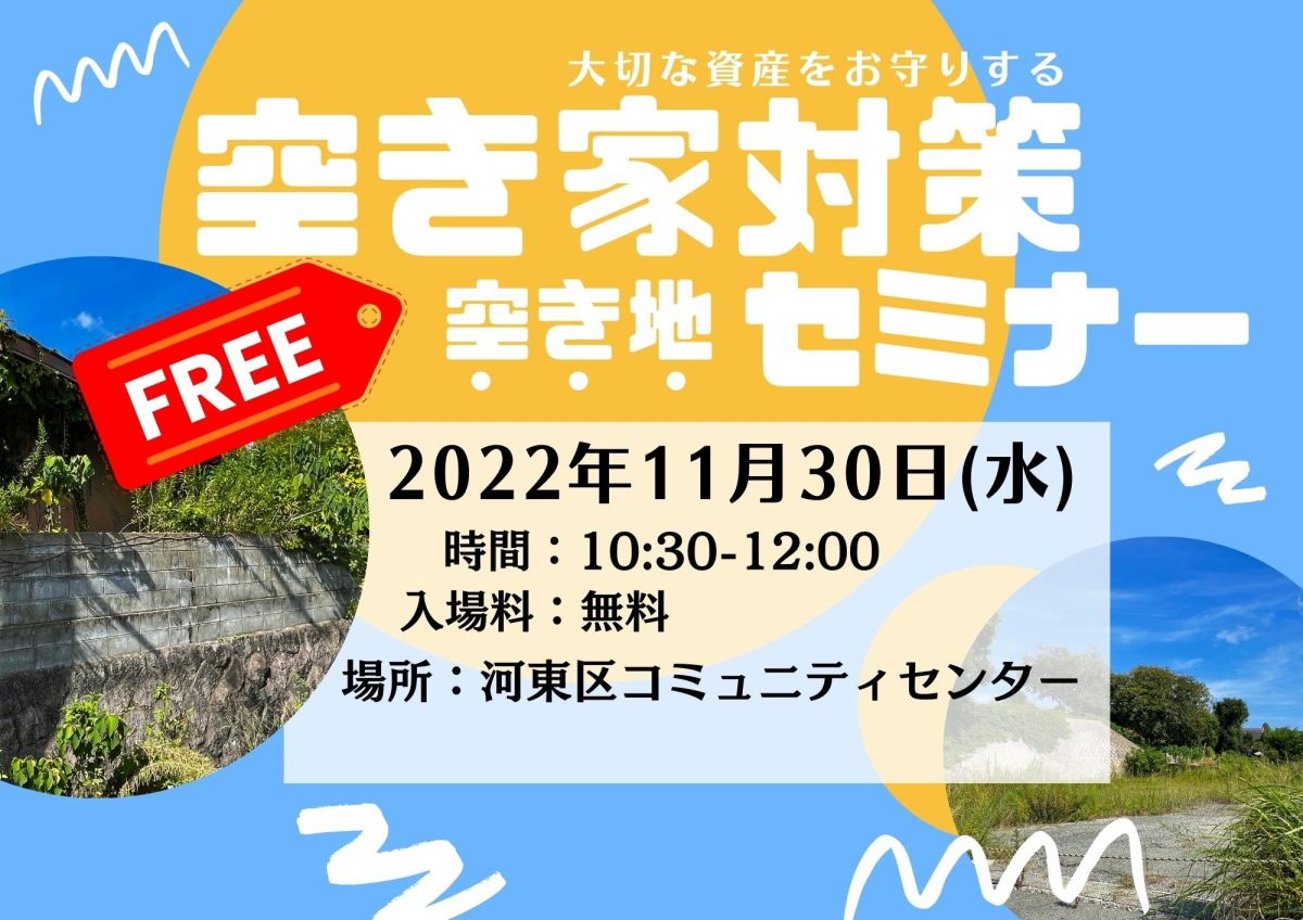 今月11月30日(水)、宗像市の「河東地区コミュニティセンター」にて空き家対策セミナーを開催します。 内容としては、大まかに↑のような形ですが、最近社会問題化してる「空き家」が起こす問題や、リフォーム、駐車場としての活用 …
