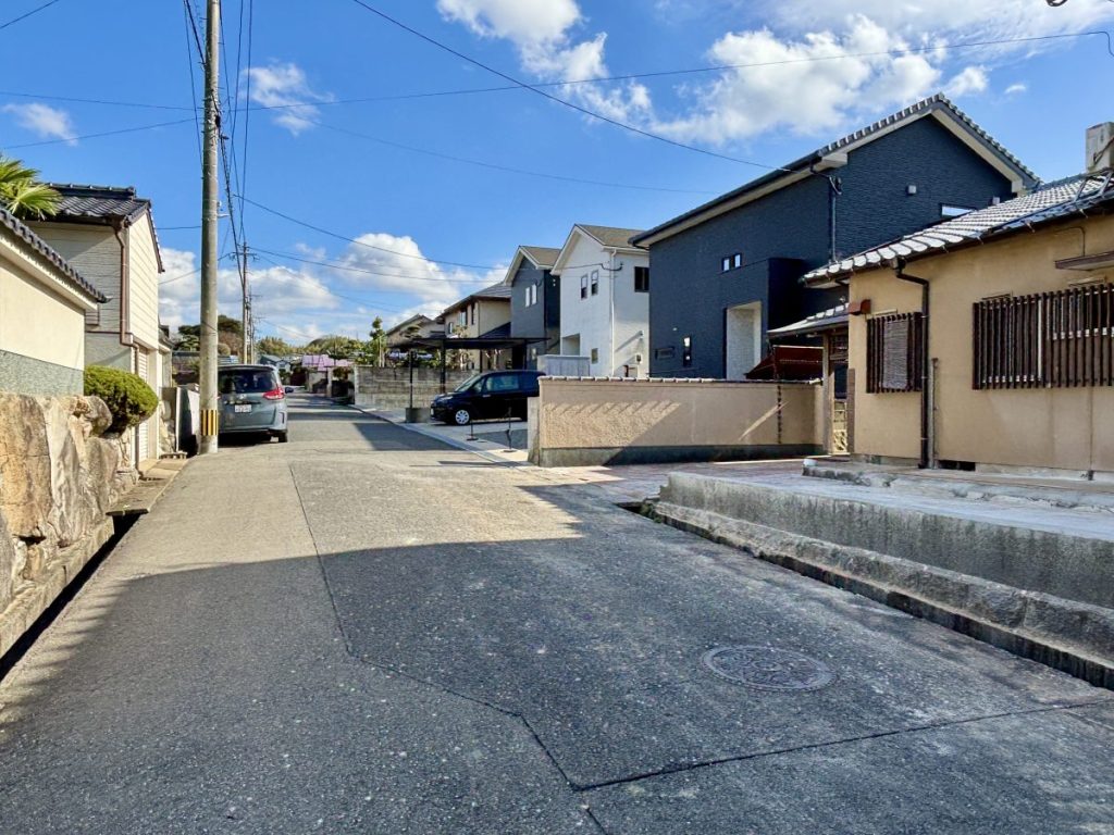 小中学校まで徒歩10分以内の安心の住環境。閑静な住宅街で、国道3号線へ車で5分・JR東郷駅へ徒歩18分とアクセス良好。