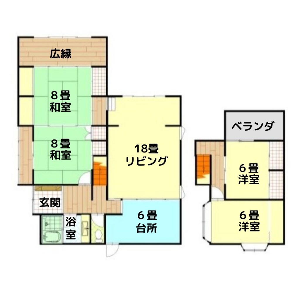 和室8畳 1階 1室 和室8畳 1階 1室 洋室6畳 2階 2室 LDK18畳 1階 1室 |